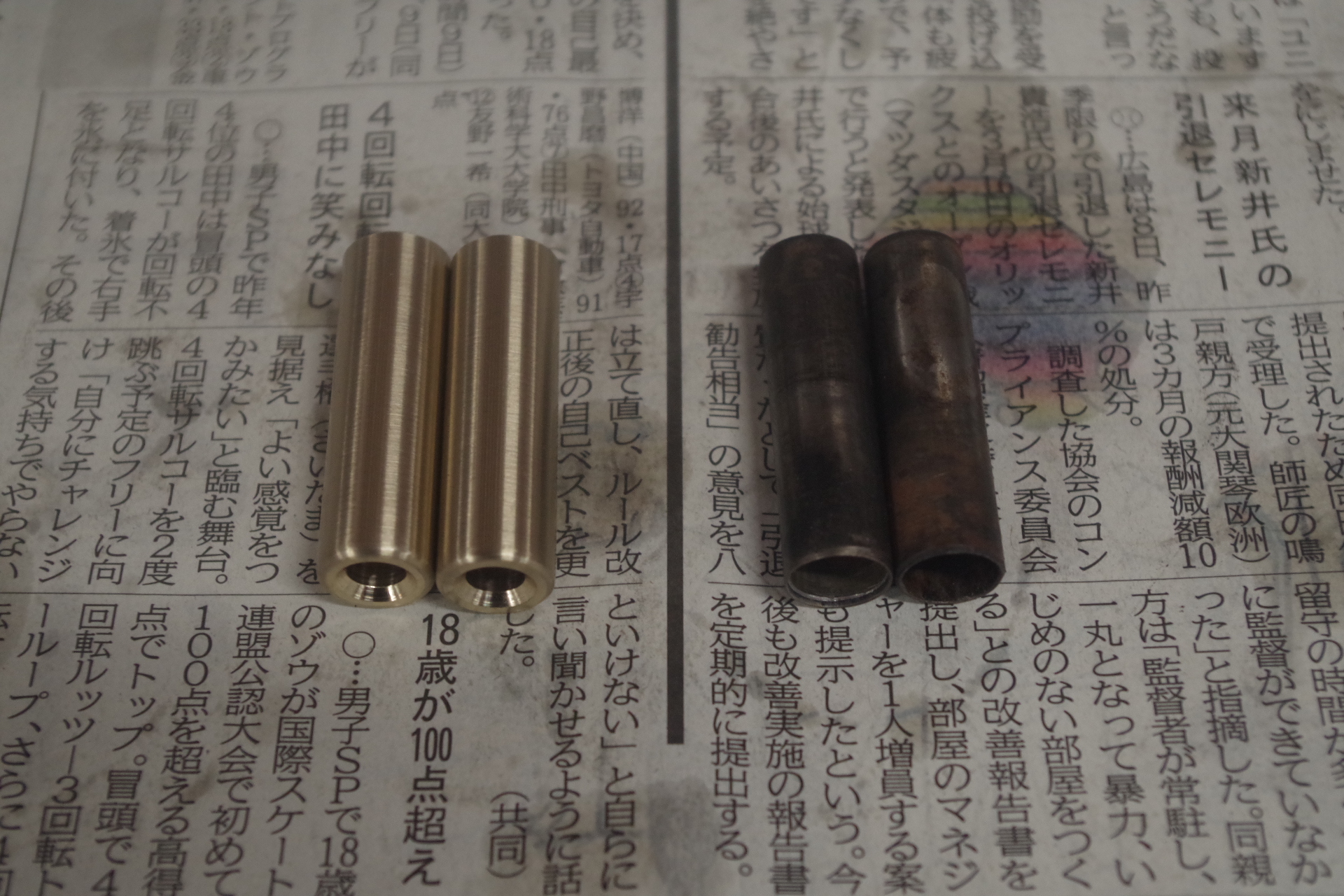 元々は鉄製のパイプですが腐食すると厄介なので銅製で製作。製作したパイプの内径は圧入後に仕上げていきます。