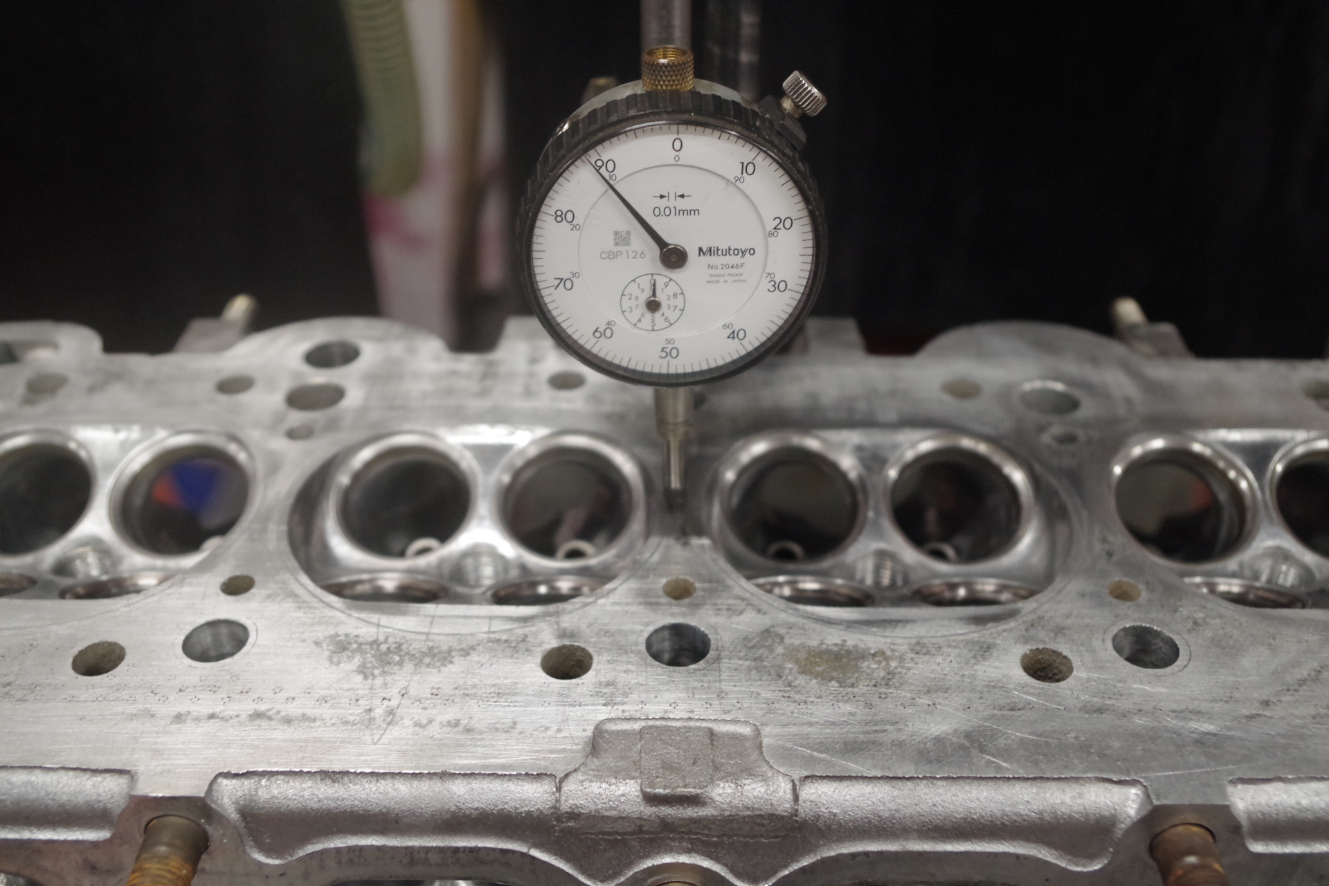 ヘッドはバルブシートカットして面研です。今回は指定量面研なので先ずはダイヤル走らせます。