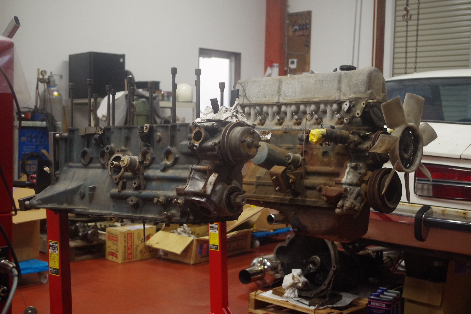 そう。L20です。ハコスカ、ブルーバード系に載っている前溜まりのブロックです。これから製作する2.6L用のベースエンジン。丸の方はオーナーさん不在なので募集中です。都合が合えばエンジン積み下ろしからキャブ調まで可能です。興味のある方はご連絡下さい。