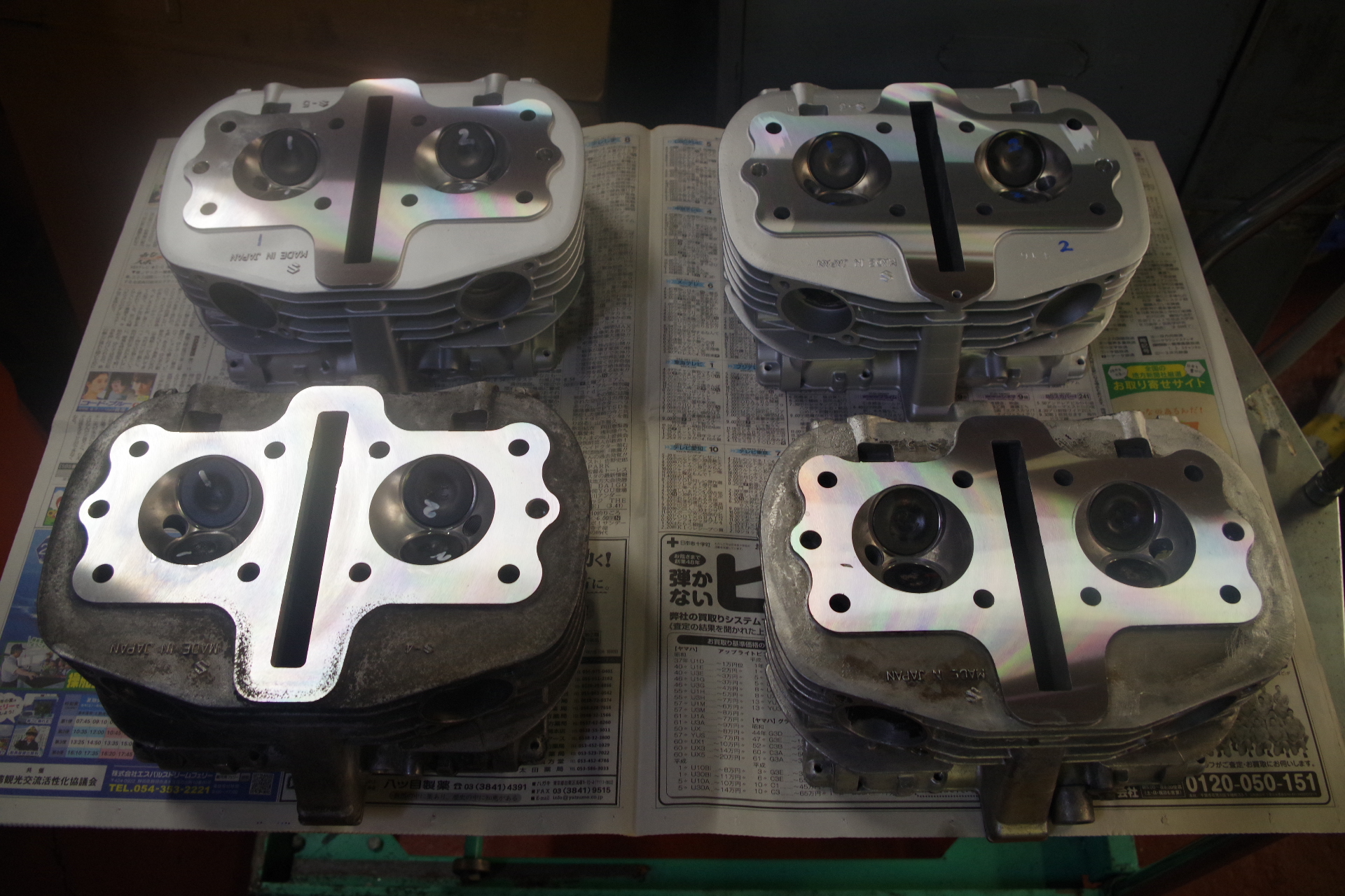 2基はノーマルSTDボア。あとの2基は69mmの450です。450ボアの場合社外メタルガスケットを使用しますのでシリンダー上面とヘッド下面研磨は必須。