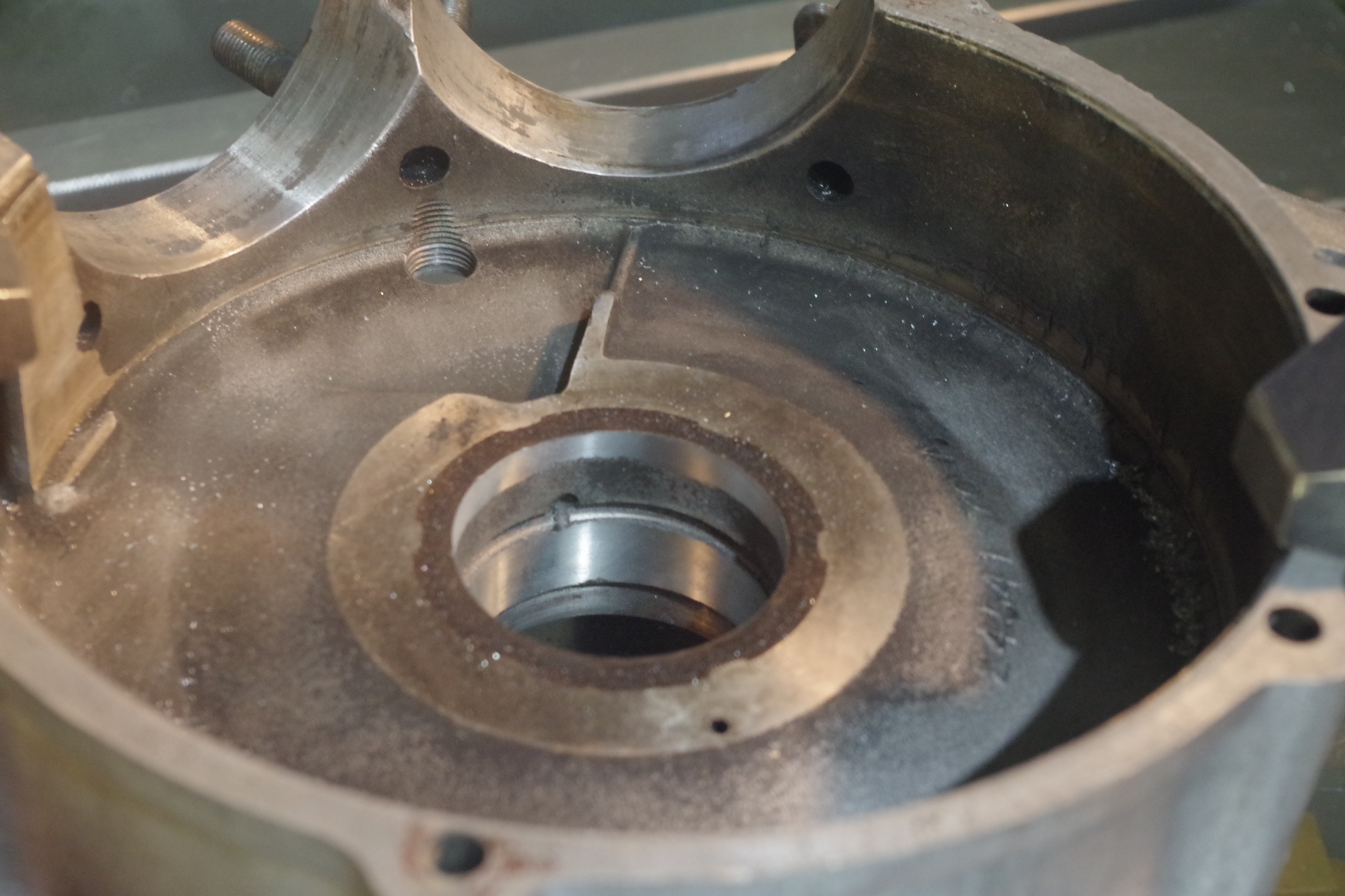 と、メインベアリングレースが手すぽだったので、O/Sレースに合わせケースボーリング。圧入してライン仕上げ。簡単に書いているだけで簡単じゃありません。