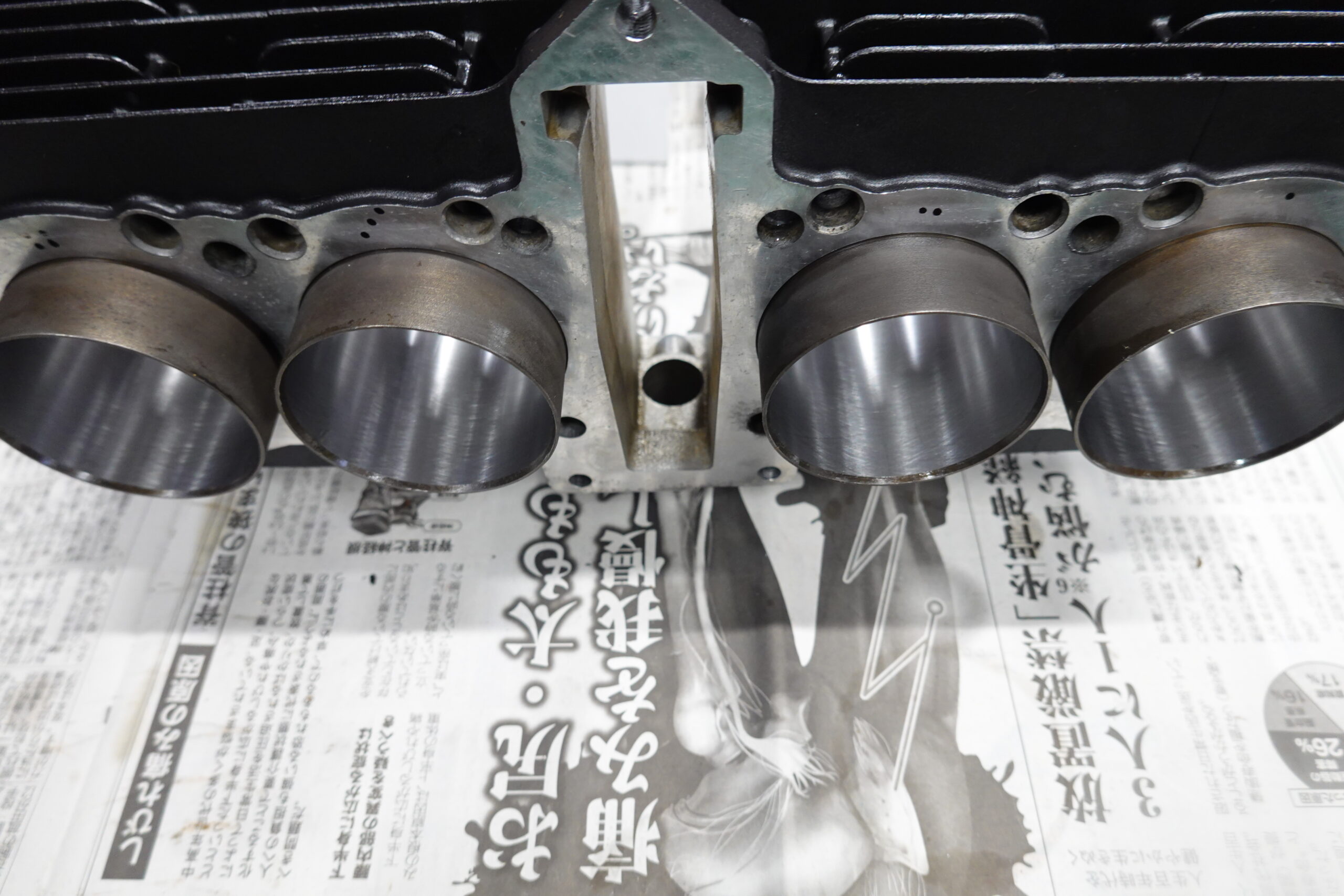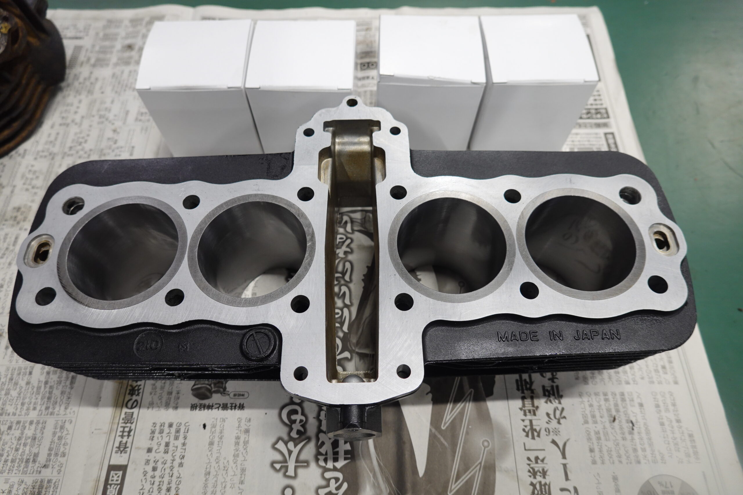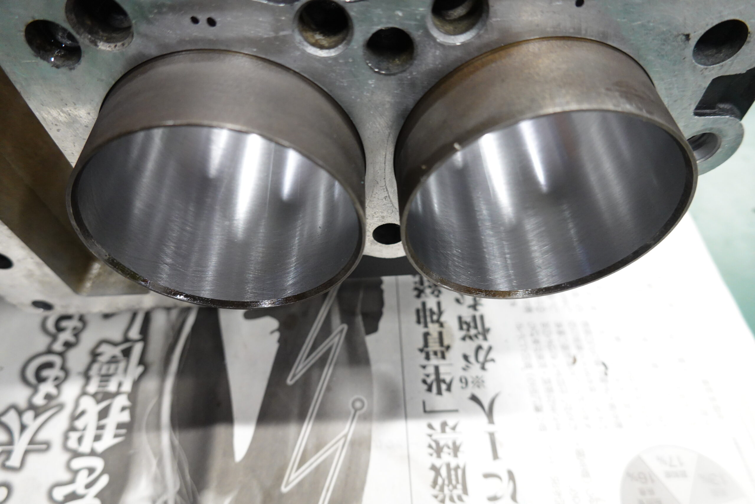 FXのブロックはzephyrと比べると肉厚なのでボアアップチューニングによく使われます。今回は既にライナーが入れられているのでボーリングのみの作業。
