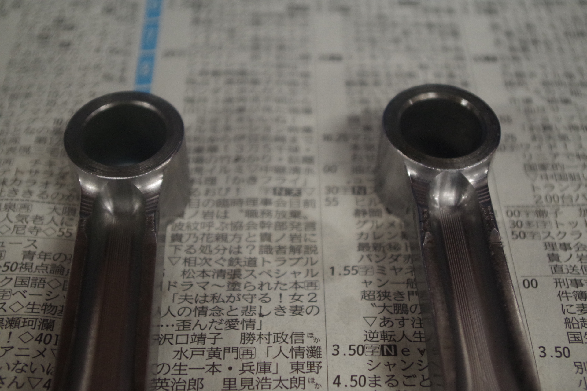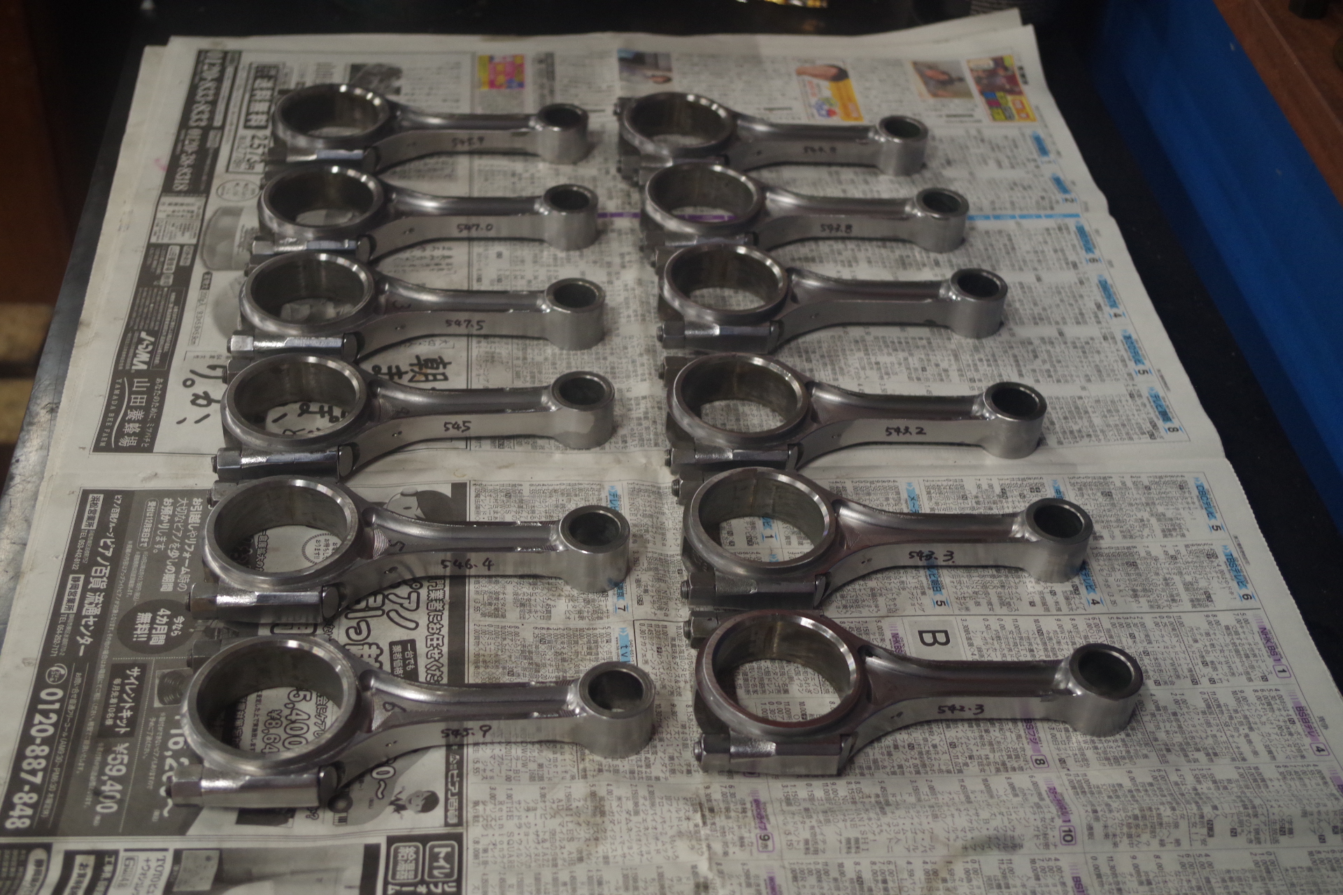 1本だけ3g誤差あり。他は2g以内に収まりました。触っていない部分とコンロッドボルト分を含めると上出来ですね。