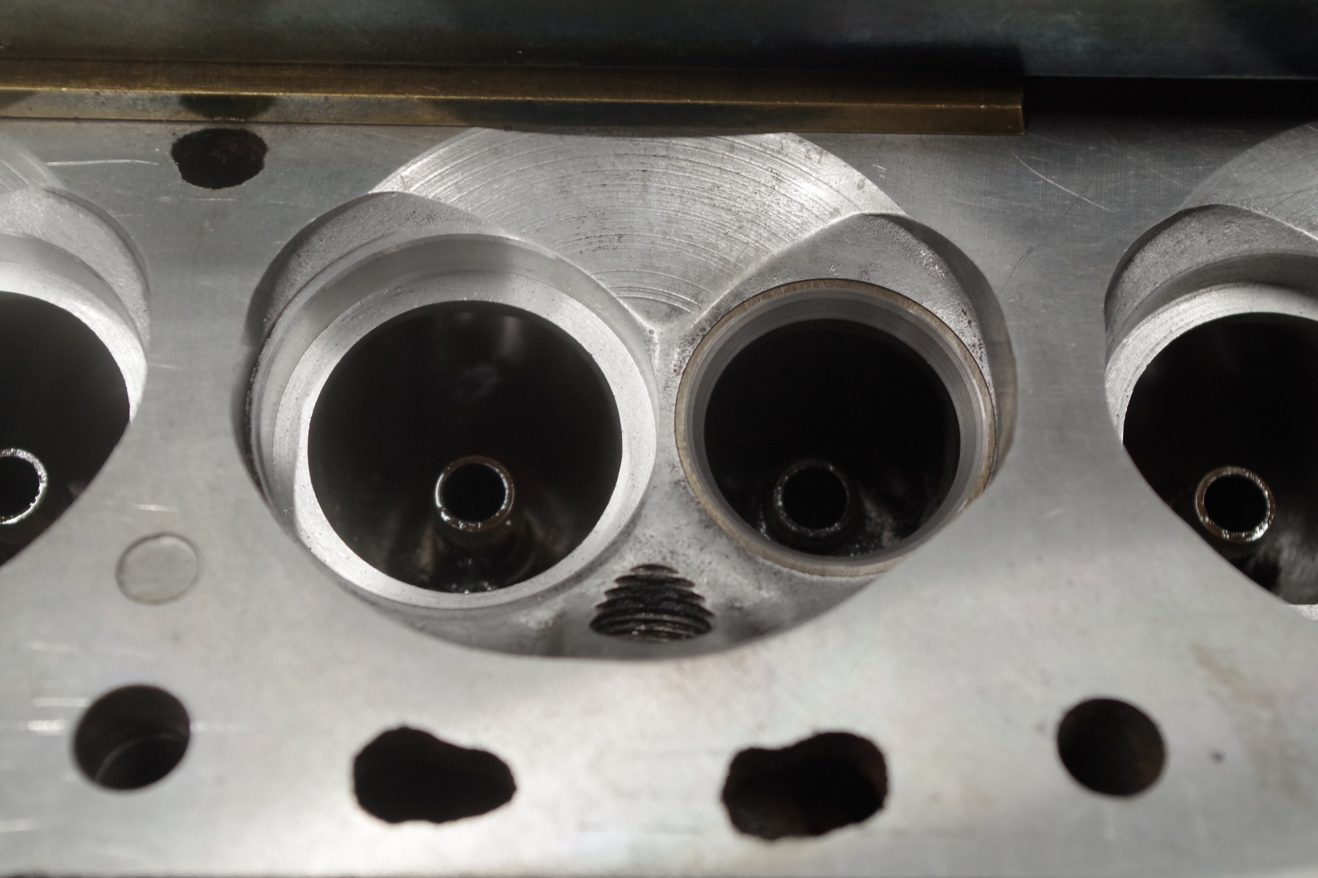バルブシート内側の余肉は後で削り段付き修正します。排気とのマージンもそこそことったのでギリギリ設計。