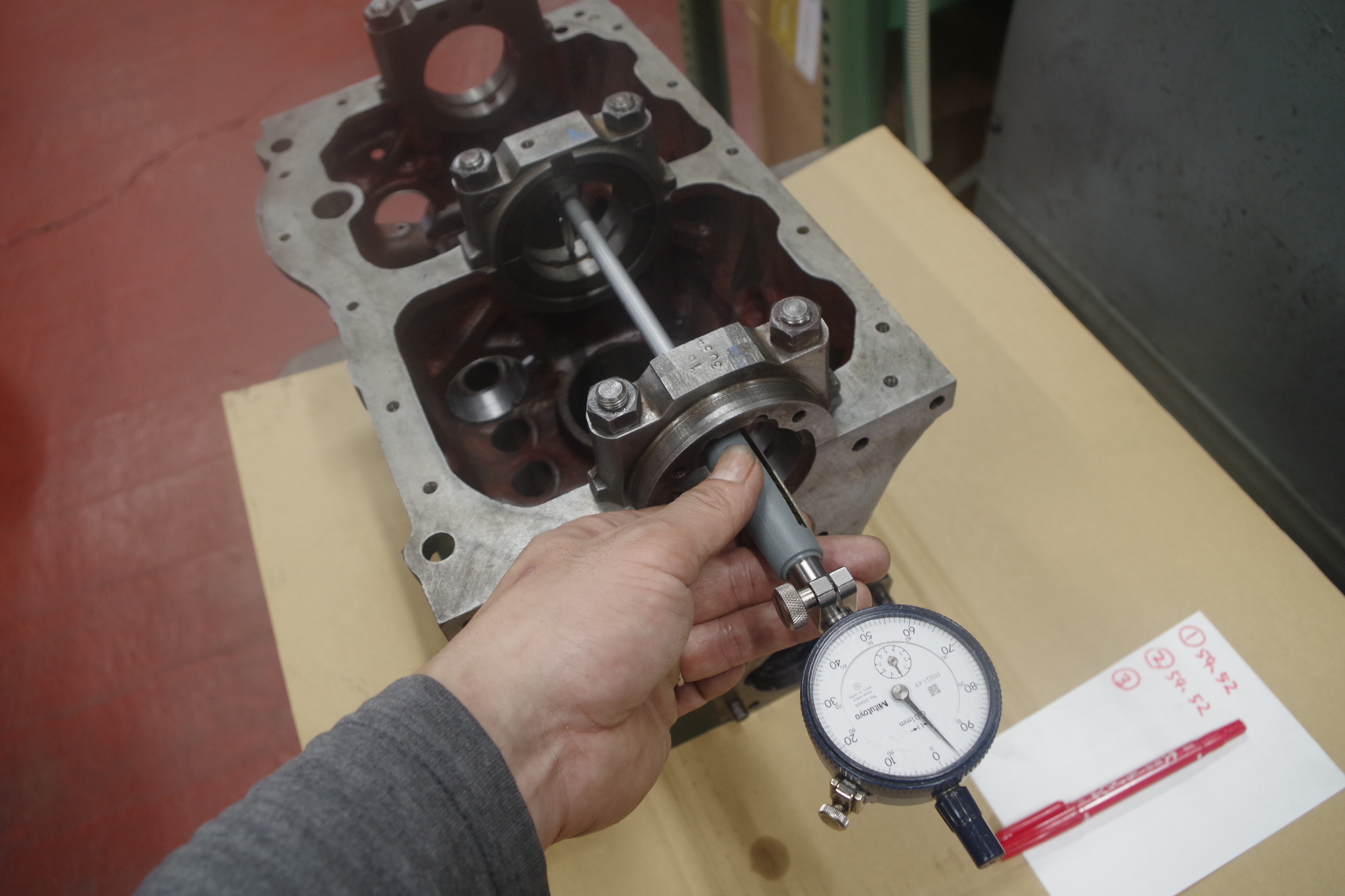 割メタル+オイル穴。コレ、マジで泣けます。3箇所とも外径内径とオイル穴位置が違うので抜き挿し用のジグを6コ作り対応しました。