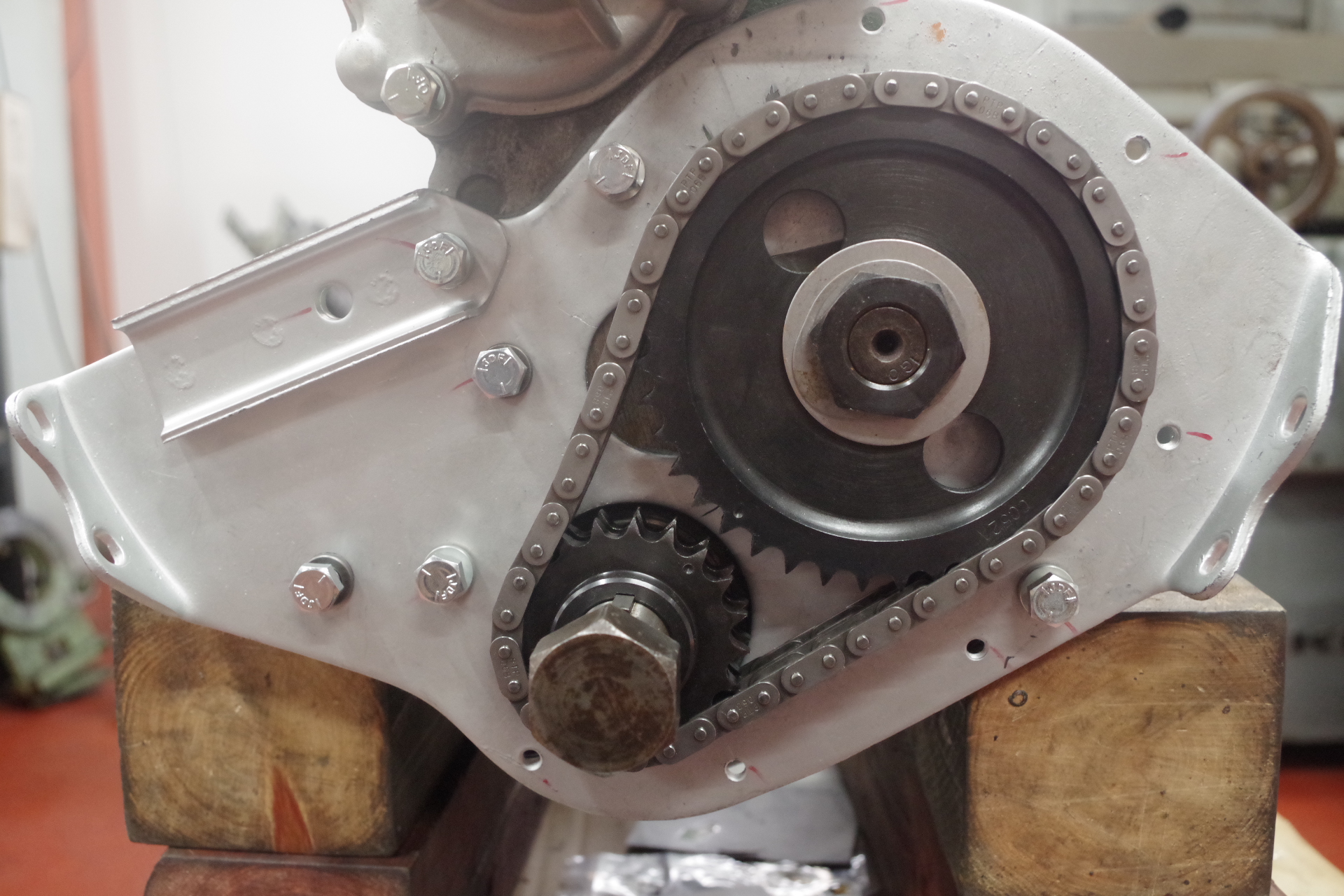 あとはメインとカムのスプロケの位置関係。本来はギア同士の面がツラになるようですが上手くはいきませんねー。