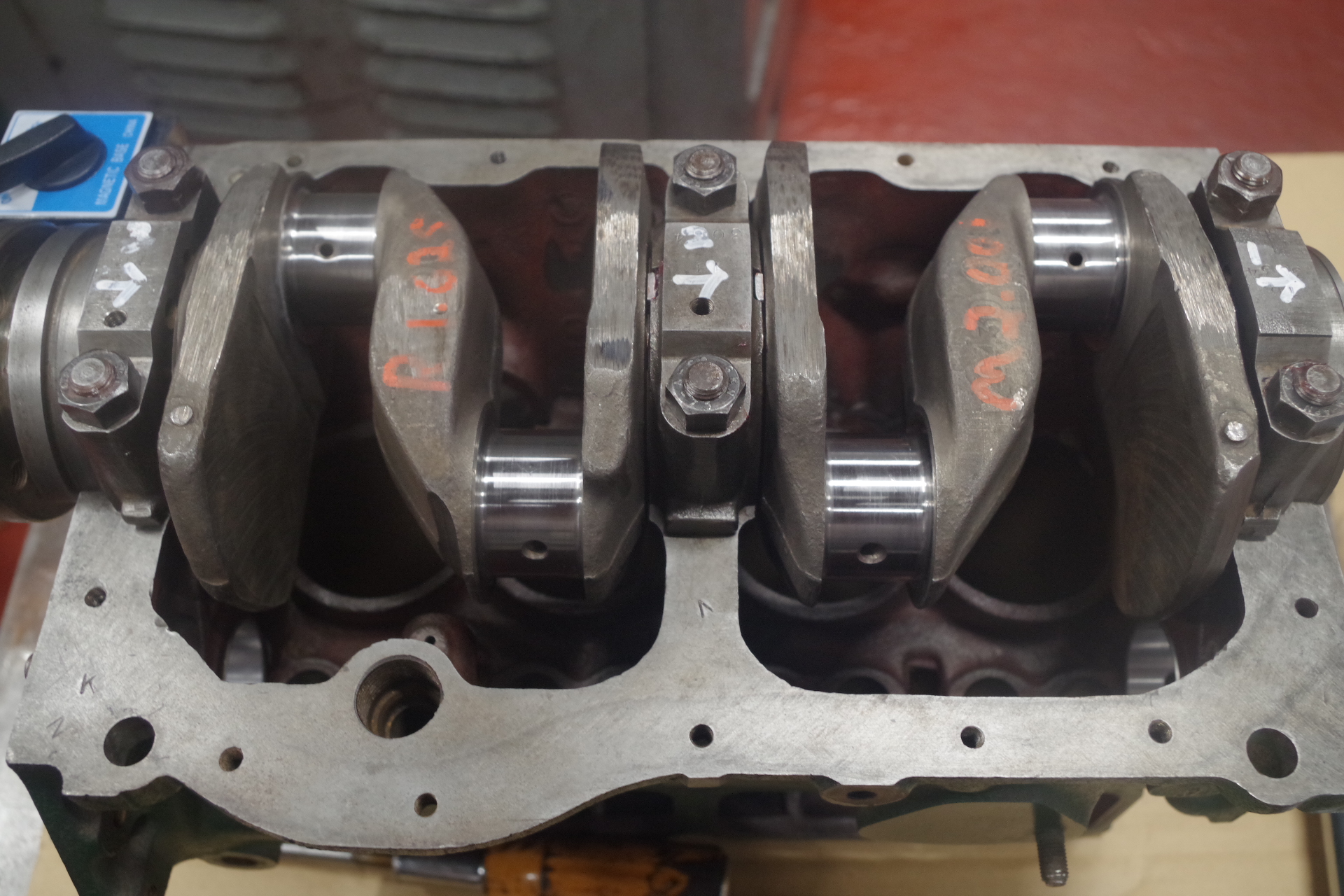クランクシャフトの曲がりを0.01mm以内に修正してメタルクリアランスの確認。