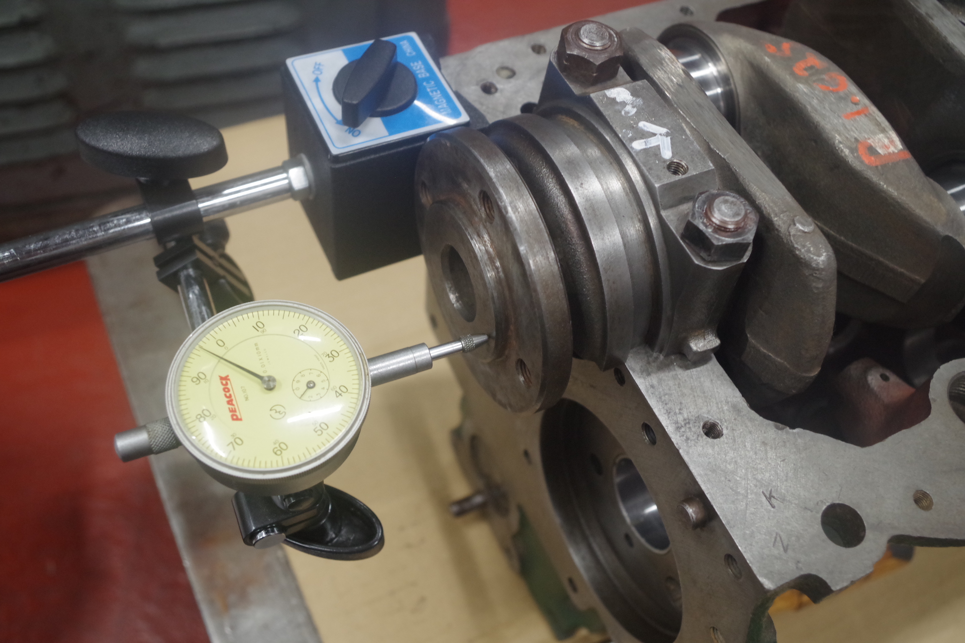 サイドメタルも新品に交換しましたのでスラスト量をダイヤルゲージで確認しています。