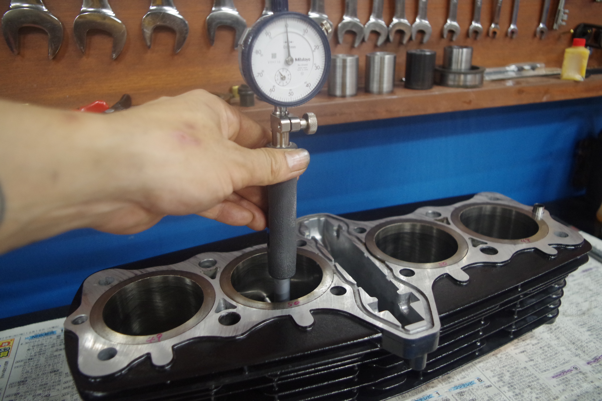 分かりやすくすると5/1000mm。エンジン加工作業には特に問題がない結果です。