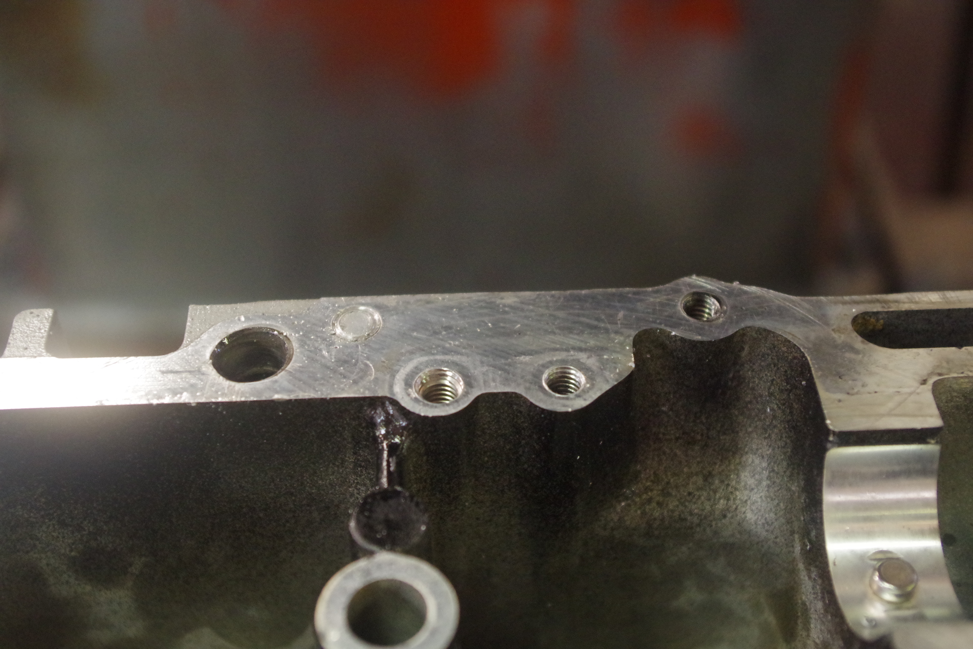 ライナー入れ替え後はライナーツバが飛びでますので上面に合わせ研磨します。